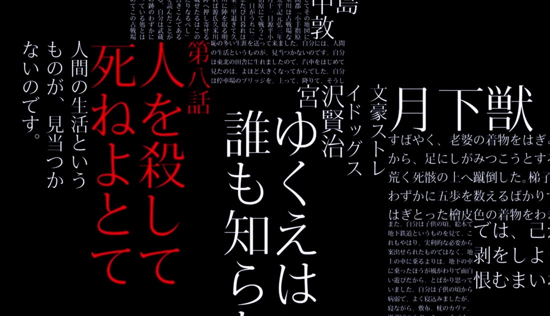 There's a small girl no older than fourteen in rather formal Japanese wear and while Atsushi sems to be frantically chasing after her, as if trying to help her, he's soon immediately stabbed in the chest by something that was too fast for him to see.